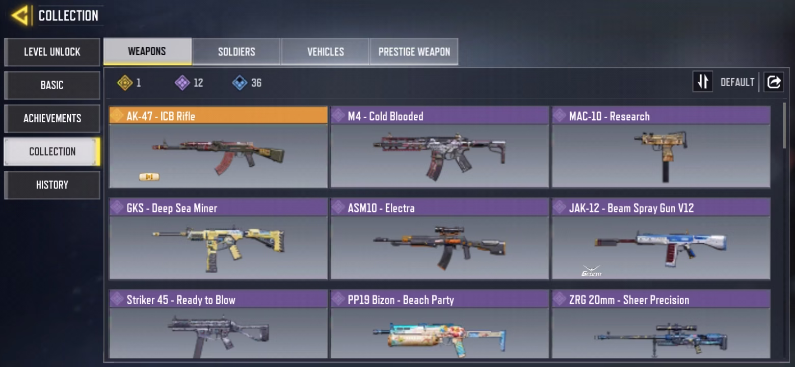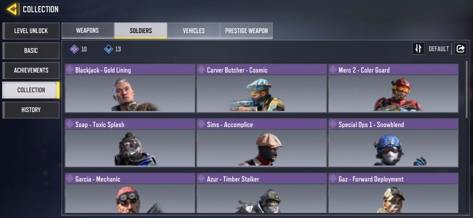 💎 اسکین‌ها: 10 اپیک (بنفش) + 13 ریر (آبی)