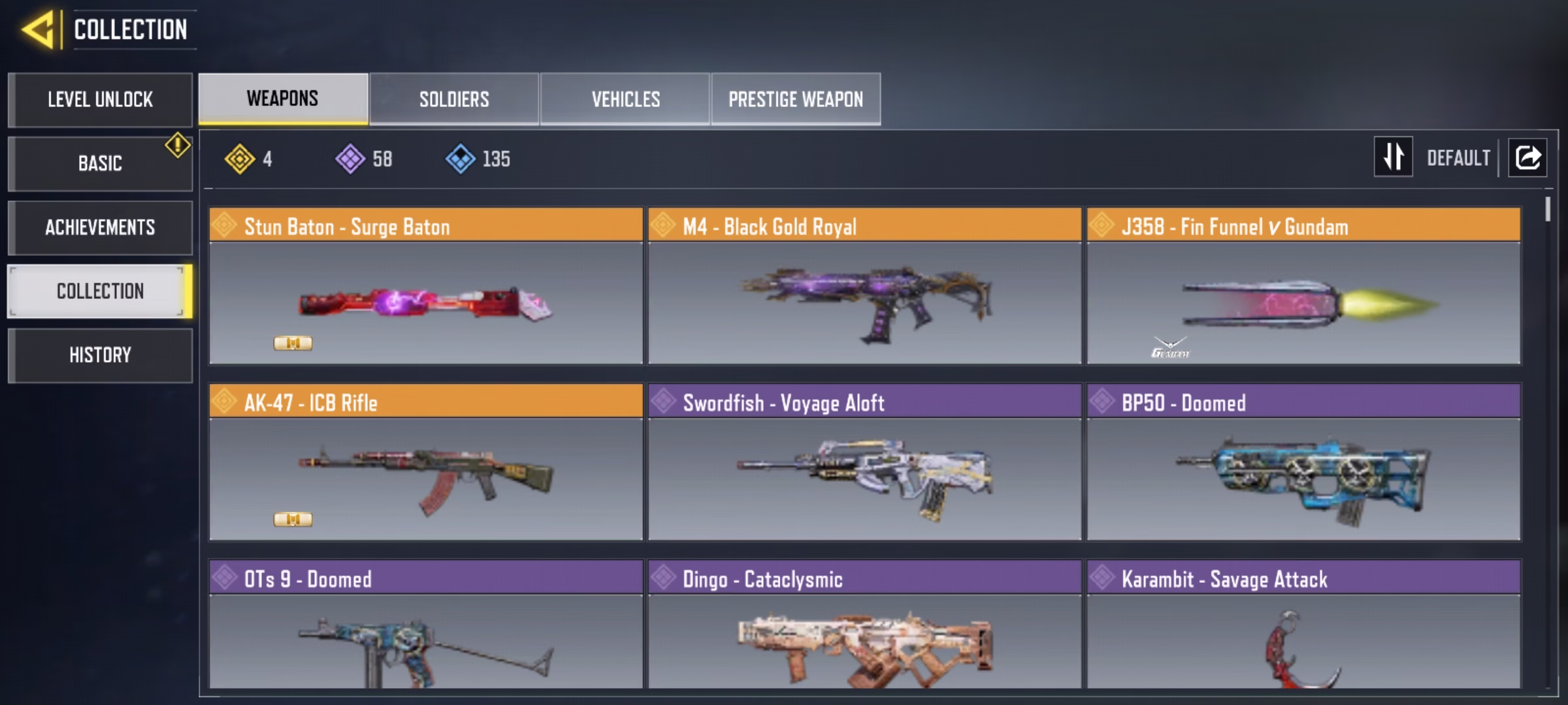 اکانت کالاف دیوتی موبایل اول 75 ریجن آسیا دارای 4 گان