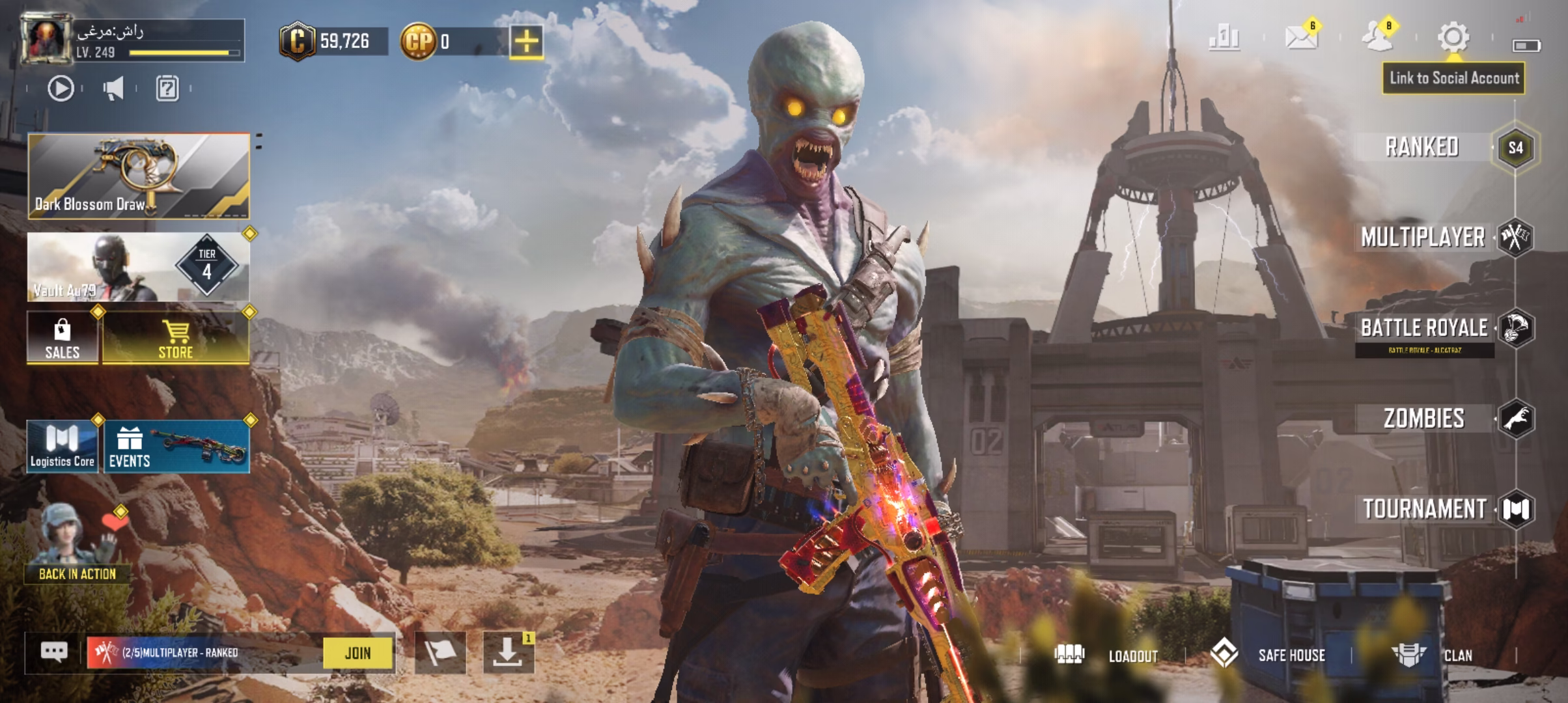 تخفیف پای معامله . معامله فقط با واسطه . اکانت سیف و یک اسکین گردونه داره و لوکاس رباتیک و سفید هست بیشتر بتل پس هارو خورده |